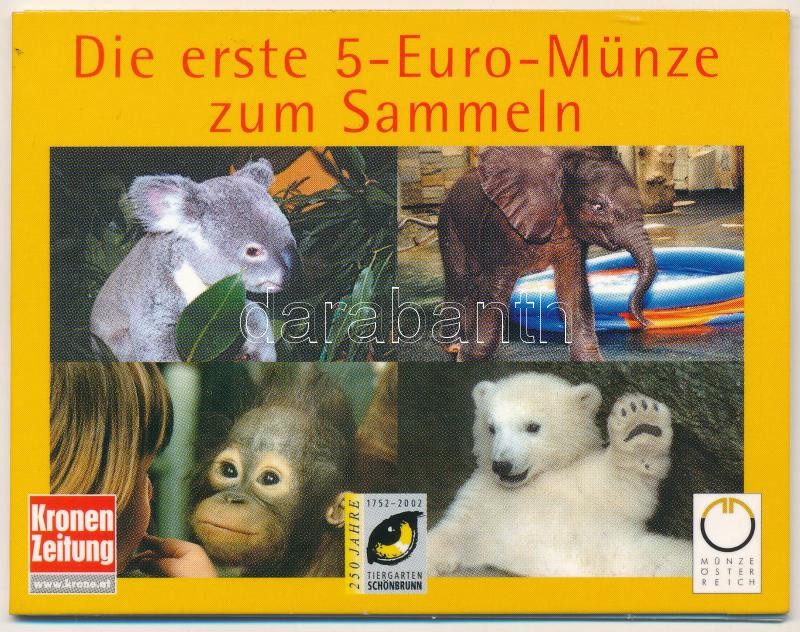 Ausztria 2002. 5E Ag "250 éves a Schönbrunn-i állatkert", "Jegesmedve" bliszterben T:1