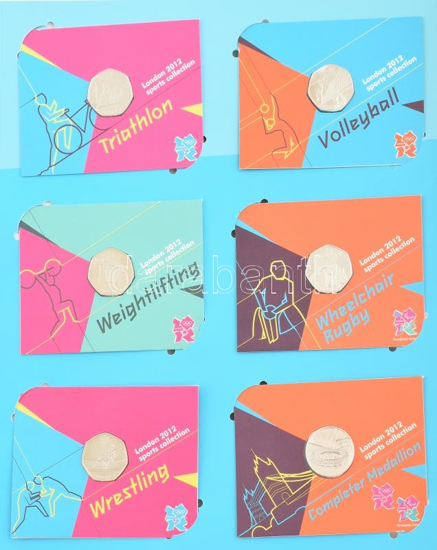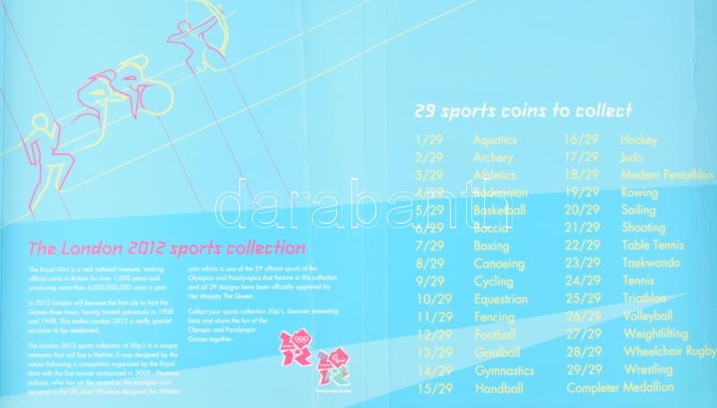 Nagy-Britannia 2011. 50p Cu-Ni "Londoni Olimpia 2012 - Sport összeállítás" (29xklf) + záróérem, az érmek karton dísztokban, eredeti sérült gyűjtőalbumba rendezve T:BU Great Britain 2011. 50 Pence Cu-Ni "2012 London Olympics - Sport Collection" (29xdiff) + completer medallion, in blisters, organized in damaged original collector's album C:BU