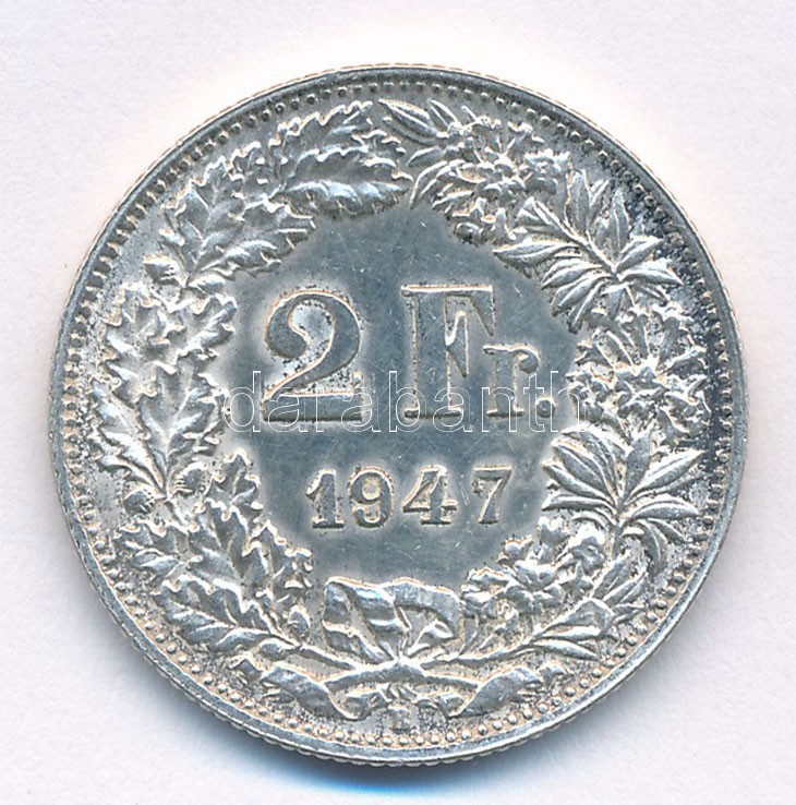 Svájc 1947B 2Fr Ag T:1-,2 Switzerland 1947B 2 Francs Ag C:AU,XF Krause... https://www.darabanth.com/de/400-Fernauktion/400.0/Numismatik/Weltweit-Munzen~2000014/Svajc-1947B-2Fr-Ag-T1-2-Switzerland-1947B-2-Francs-Ag-CAU-XF-Krause-KM2321~II2451854
