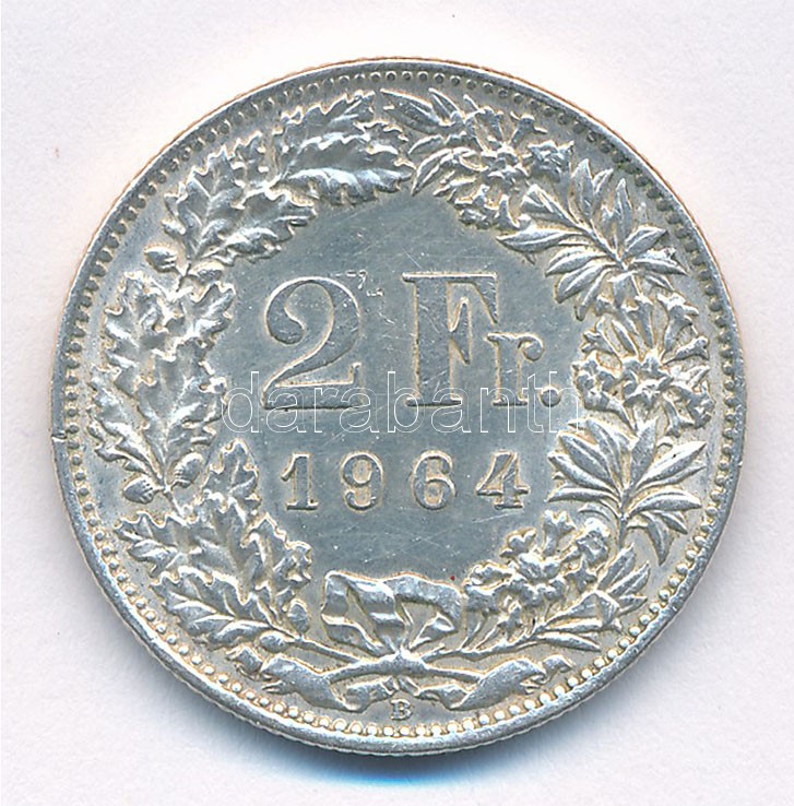 Svájc 1964B 2Fr Ag T:2 Switzerland 1964B 2 Francs Ag C:XF Krause KM#21 https://www.darabanth.com/de/400-Fernauktion/400.0/Numismatik/Weltweit-Munzen~2000014/Svajc-1964B-2Fr-Ag-T2-Switzerland-1964B-2-Francs-Ag-CXF-Krause-KM2321~II2451919