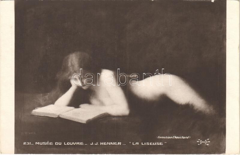 Beschreibung: La Liseuse / Erotic nude lady art postcard. Musée du Louvre, Paris. Colleciton Chauchard s: J. J. Henner