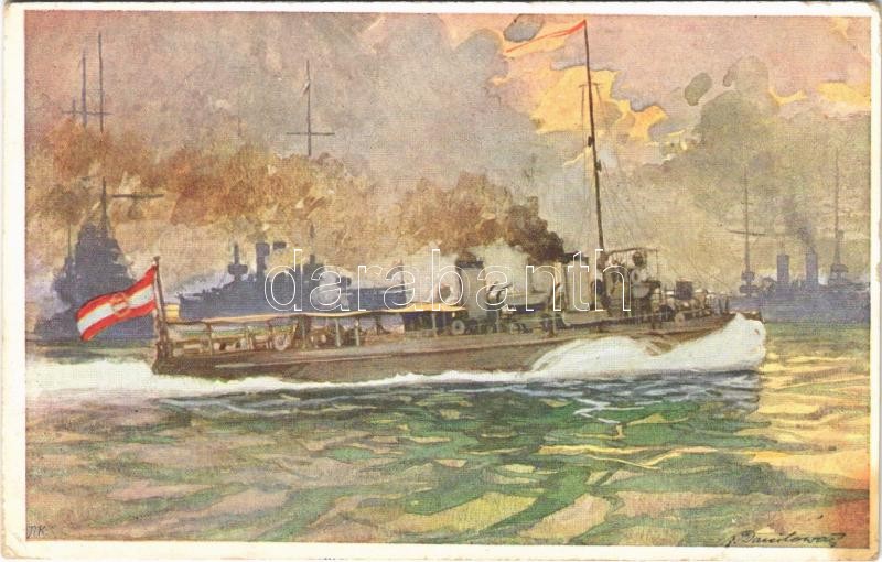 Beschreibung: 1914 Österreichische Kriegsmarine Torpedobootzerstörer / WWI Austro-Hungarian Navy art postcard, K.u.K. Kriegsmarine torpedo destroyer, naval flag. B.K.W.I. 928-6. s: J. Danilowatz + "K.U.K. KRIEGSMARINE SMS RADETZKY" (EK)