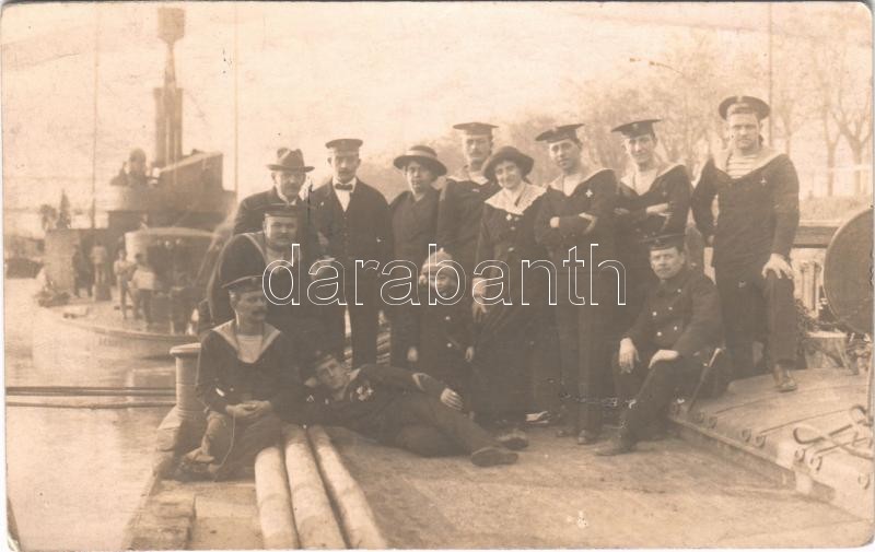 Beschreibung: 1915 Bród, Nagyrév, Slavonski Brod, Brod na Savi; SMS Szamos (?) monitor kapitánya és legénysége a parton. Dunaflottilla. / K.u.K. Kriegsmarine, Donauflottille / WWI Austro-Hungarian Danube Fleet river guard ship SMS "SZAMOS" (?), mariners and captain. photo (EK)