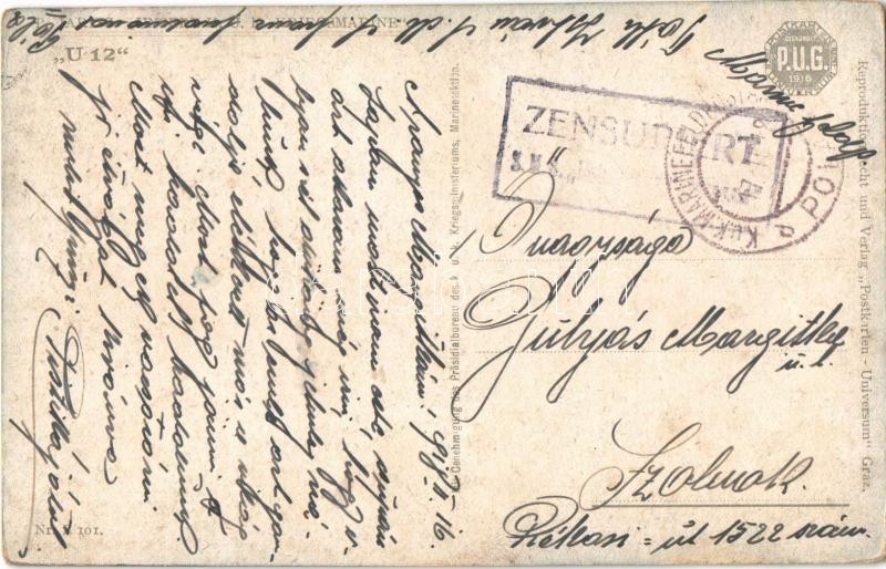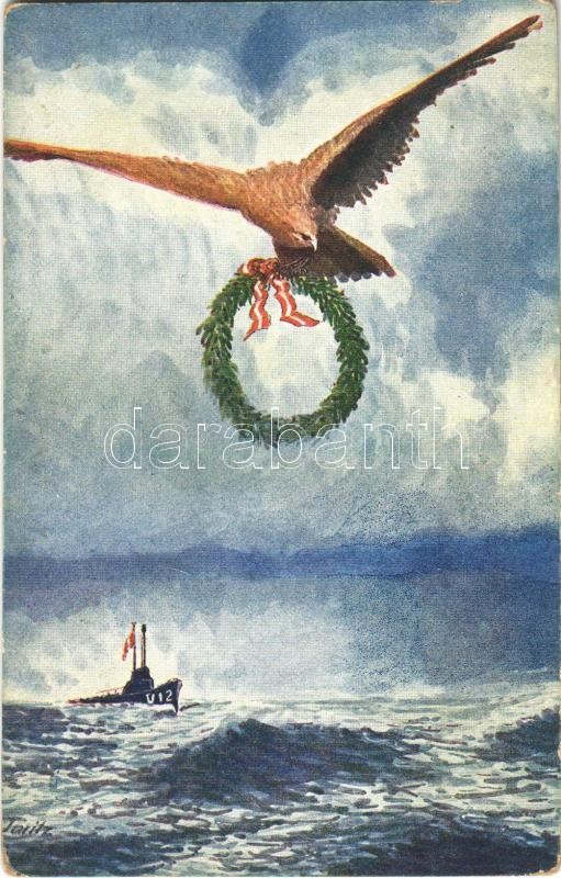 1918 Unsere K.u.K. Kriegsmarine: SM Unterseeboot U-12 (U-XII) / WWI Austro-Hungarian Navy art postcard, submarine SM U-12. Nr. F. 101. s: P. Jaritz + "ZENSURIERT SMS ERZ. FRANZ FERDINAND" (EK)