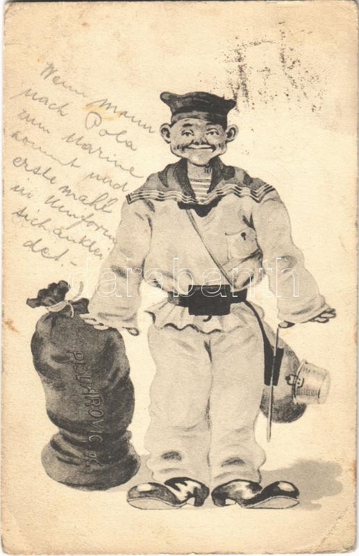 Beschreibung: Pisdarovic 96. / K.u.K. Kriegsmarine Matrose / Austro-Hungarian Navy art postcard, mariner. Dworak style, Guido Costalunga Pola 1909. 16200. (Rb)