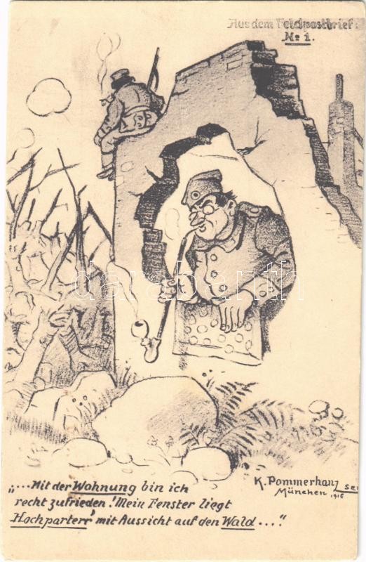 Beschreibung: Aus dem Feldpostbrief No. 1. / WWI German military art postcard, humour. S.V.D. Nr. 1568/1. s: K. Pommerhanz