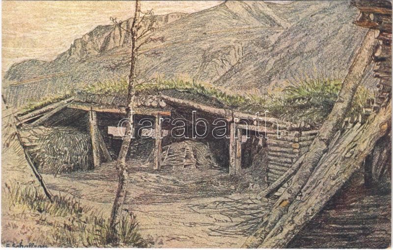 Stützpunkt an der Südtirolerfront / WWI Austro-Hungarian K.u.K. military art postcard, base on the South Tyrolean front. Offizielle Karte für Rotes Kreuz, Kriegsfürsorgeamt, Kriegshilfsbüro Nr. 603.