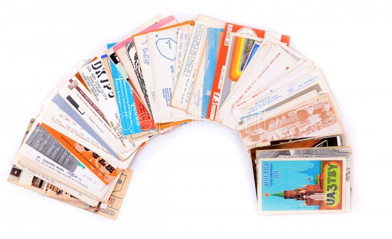 100 db MODERN főleg szovjet QSL, azaz rádióamatőr összeköttetést igazoló lap, reklámok / 100 MODERN mostly Soviet QSL, i.e. confirmation cards of a two-way communication between two amateur radio stations, advertisements