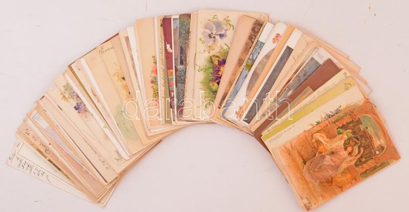Kb. 100 db RÉGI századfordulós motívum képeslap, zsáner lapok, újévi, karácsonyi és húsvéti üdvözlő / Cca. 100 pre-1910 motive postcards: greetings, flowers