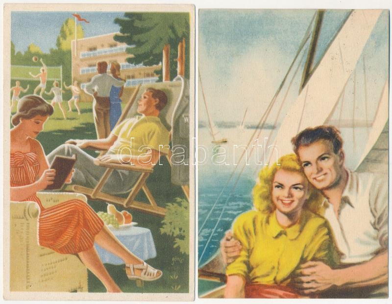 Beschreibung: 2 db modern magyar szocreál propaganda képeslap az 1950-es évekből / 2 modern Hungarian Socialist propaganda postcards from the 50's