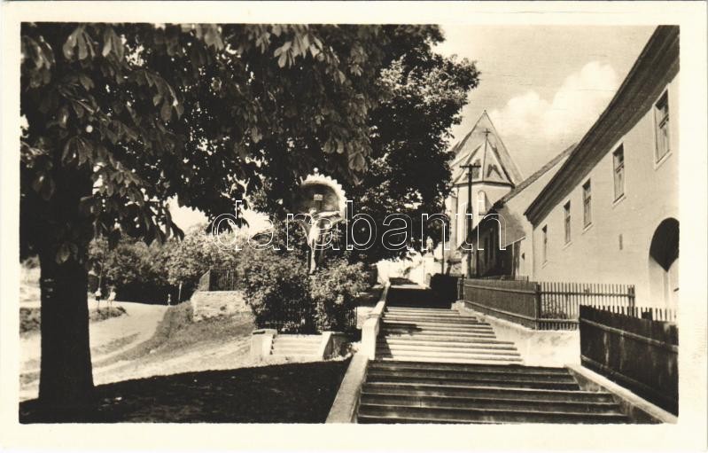 Beschreibung: 1950 Szentgyörgy, Sankt Georgen, Svaty Jur pri Bratislave, Sväty Jur; Farsky kostol / Plébániatemplom / parish church (EK)