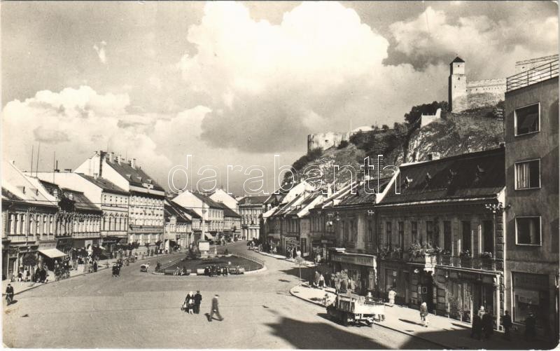 Trencsén, Trencín; látkép, vár, üzletek / general view, shops, castle ... https://www.darabanth.com/de/401-Fernauktion/401.0/Ansichtskarten/Slowakei~1500013/Trencsen-Trencin-latkep-var-uzletek-general-view-shops-castle-fa~II2461717