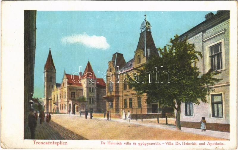 Trencsénteplic, Trencianske Teplice; Dr. Heinrich villa, gyógyszertár ... https://www.darabanth.com/de/401-Fernauktion/401.0/Ansichtskarten/Slowakei~1500013/Trencsenteplic-Trencianske-Teplice-Dr-Heinrich-villa-gyogyszertar-villa-and-pharmacy~II2462547
