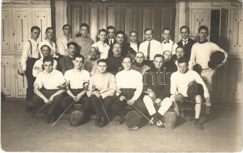 1922 Budapest, Santelli vívóterem vívókkal és középen Italo Santelli vívómesterrel / Hungarian fencers with Italo Santelli, Italian fencing master in Budapest. photo