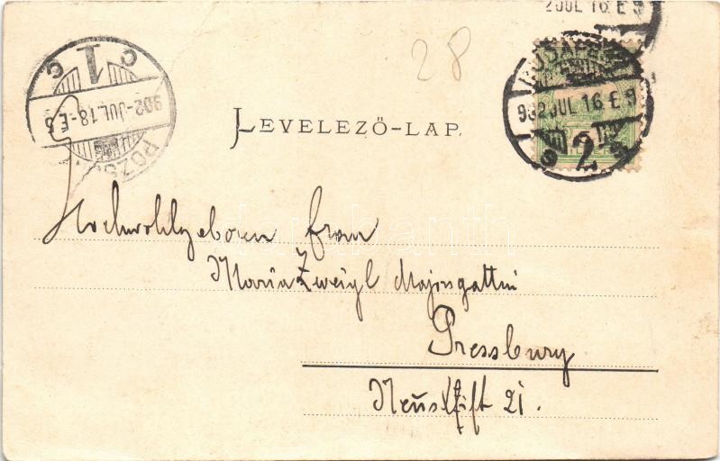 Beschreibung: 1902 Budapest V. Dunai részlet a Ferenc József rakparttal, villamos. Ganz Antal 156. (felületi sérülés / surface damage)