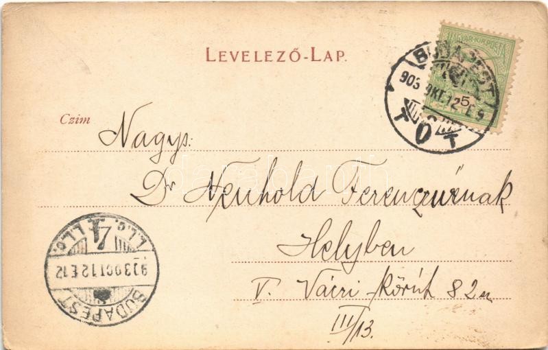Beschreibung: 1903 Budapest V. Klotild paloták, épülő Erzsébet híd (kopott sarkak / worn corners)