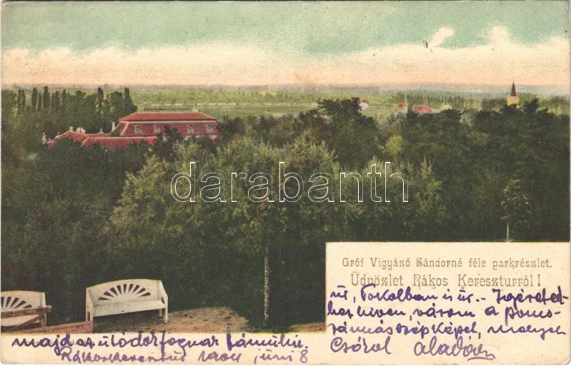 1904 Budapest XVII. Rákoskeresztúr, Gróf Vigyázó Sándorné féle park https://www.darabanth.com/de/401-Fernauktion/401.0/Ansichtskarten/Ungarn~1500001/1904-Budapest-XVII-Rakoskeresztur-Grof-Vigyazo-Sandorne-fele-park~II2458980
