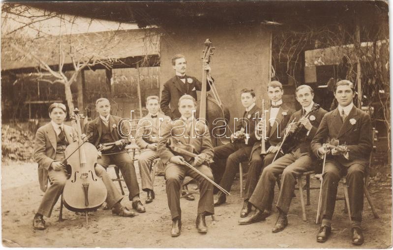 1912 Csurgó, cigányzenekar / Gypsy musicians. photo (EK) https://www.darabanth.com/de/401-Fernauktion/401.0/Ansichtskarten/Ungarn~1500001/1912-Csurgo-ciganyzenekar-Gypsy-musicians-photo-EK~II2462910