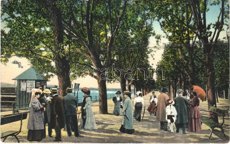 Beschreibung: 1914 Balatonfüred, Balaton partján, sétány. Kurzweil Frigyes kiadása (fa)