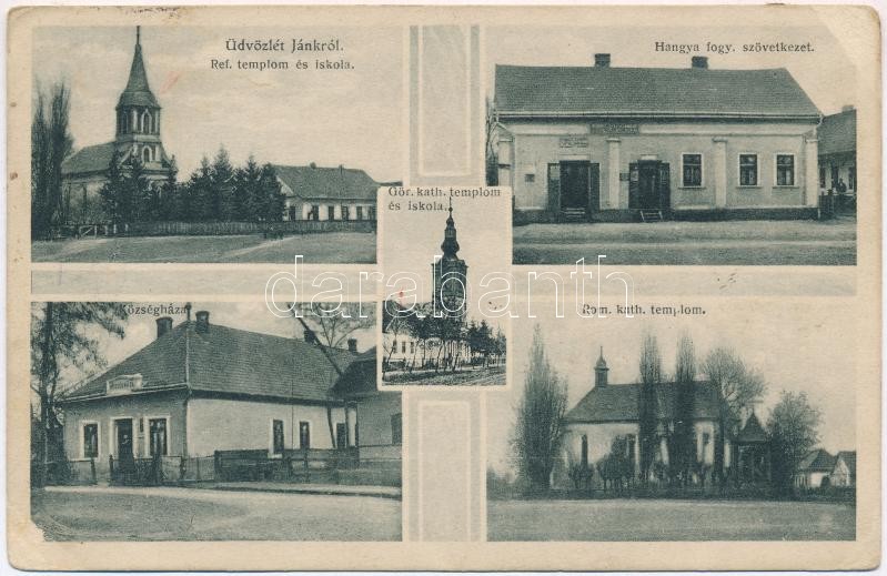 1933 Jánk (Jánkmajtis), Református templom és iskola, Görögkatolikus templom és iskola, Községháza, Római katolikus templom, Hangya Szövetkezet üzlete. Szilágyi Arthur műterméből (ázott / wet damage)
