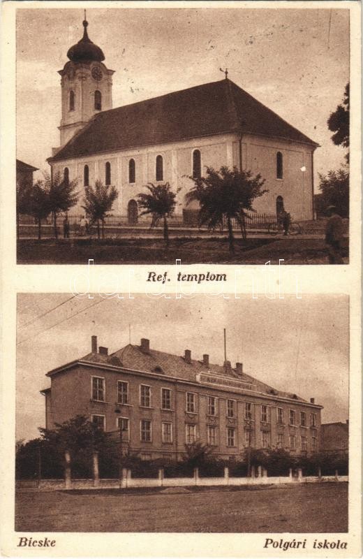 1934 Bicske, Református templom, Polgári iskola. Szabó András kiadása https://www.darabanth.com/de/401-Fernauktion/401.0/Ansichtskarten/Ungarn~1500001/1934-Bicske-Reformatus-templom-Polgari-iskola-Szabo-Andras-kiadasa~II2461044