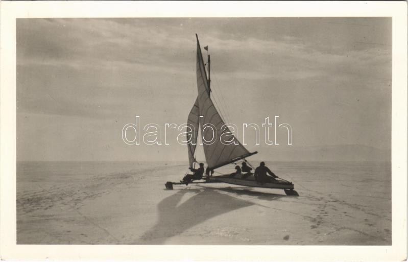 1940 Balaton, jégvitorlás, jégvitorlázás, téli sport https://www.darabanth.com/de/401-Fernauktion/401.0/Ansichtskarten/Ungarn~1500001/1940-Balaton-jegvitorlas-jegvitorlazas-teli-sport~II2463524