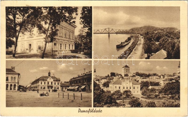 Beschreibung: 1941 Dunaföldvár, Híd, Missziós ház, Fő tér. Somló Lajos felvétele és kiadása (EK)