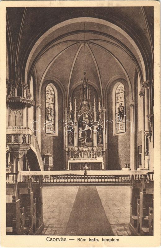 1942 Csorvás (Békéscsaba), Római katolikus templom, belső https://www.darabanth.com/de/401-Fernauktion/401.0/Ansichtskarten/Ungarn~1500001/1942-Csorvas-Bekescsaba-Romai-katolikus-templom-belso~II2462186