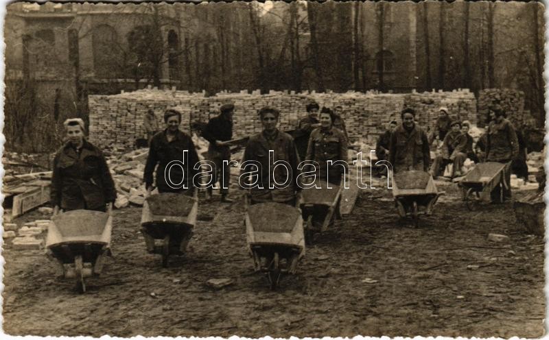 1947 Budapest, Munkaszolgálatos hölgyek talicskákkal, tégla tisztítás.... https://www.darabanth.com/de/401-Fernauktion/401.0/Ansichtskarten/Ungarn~1500001/1947-Budapest-Munkaszolgalatos-holgyek-talicskakkal-tegla-tisztitas-Hatoldalon-nevekkel-e~II2165493