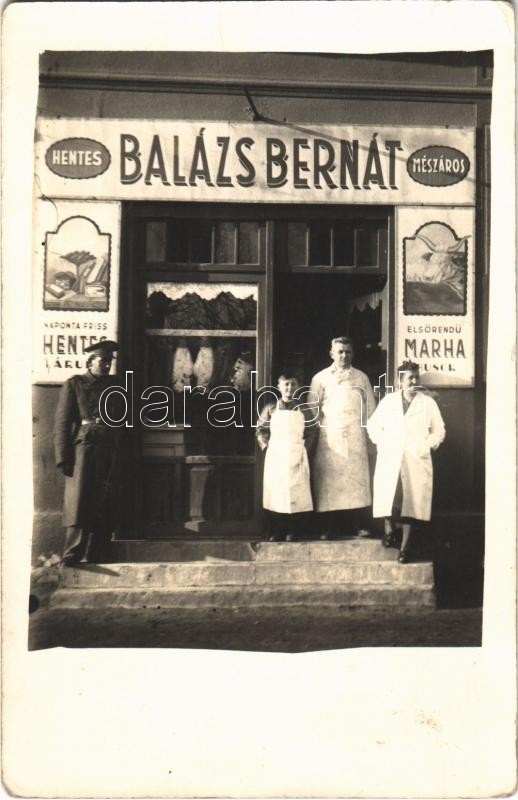 1947 Budapest XVIII. Pesterzsébet, Balázs Bernát hentes és mészáros üz... https://www.darabanth.com/de/401-Fernauktion/401.0/Ansichtskarten/Ungarn~1500001/1947-Budapest-XVIII-Pesterzsebet-Balazs-Bernat-hentes-es-meszaros-uzlete-photo~II2461815
