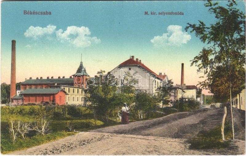 Békéscsaba, M. kir. selyemfonoda. Vasúti levelezőlapárusítás 21. 1915. https://www.darabanth.com/de/401-Fernauktion/401.0/Ansichtskarten/Ungarn~1500001/Bekescsaba-M-kir-selyemfonoda-Vasuti-levelezolaparusitas-21-1915~II2462248