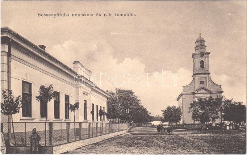 Besenyőtelek, népiskola, római katolikus templom. Baross nyomda https://www.darabanth.com/de/401-Fernauktion/401.0/Ansichtskarten/Ungarn~1500001/Besenyotelek-nepiskola-romai-katolikus-templom-Baross-nyomda~II2465795