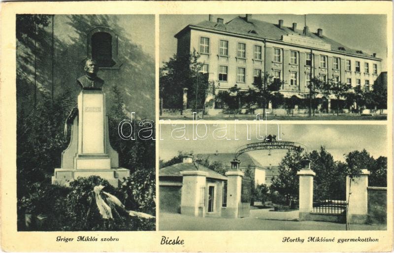 Bicske, Griger Miklós szobra, Horthy Miklósné gyermekotthon (EK) https://www.darabanth.com/de/401-Fernauktion/401.0/Ansichtskarten/Ungarn~1500001/Bicske-Griger-Miklos-szobra-Horthy-Miklosne-gyermekotthon-EK~II2461041