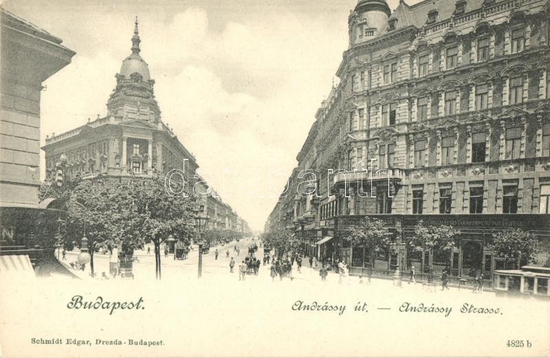 Budapest VI. Andrássy út, Pesti Hazai Első Takarékpénztár Egylet, https://www.darabanth.com/de/401-Fernauktion/401.0/Ansichtskarten/Ungarn~1500001/Budapest-VI-Andrassy-ut-Pesti-Hazai-Elso-Takarekpenztar-Egylet-~II1898660