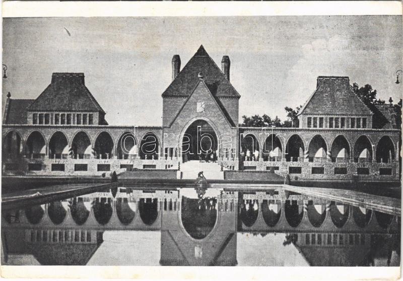 Debrecen, Köztemető, ravatalozó homlokzata a tükörképpel (fa) https://www.darabanth.com/de/401-Fernauktion/401.0/Ansichtskarten/Ungarn~1500001/Debrecen-Koztemeto-ravatalozo-homlokzata-a-tukorkeppel-fa~II2441009