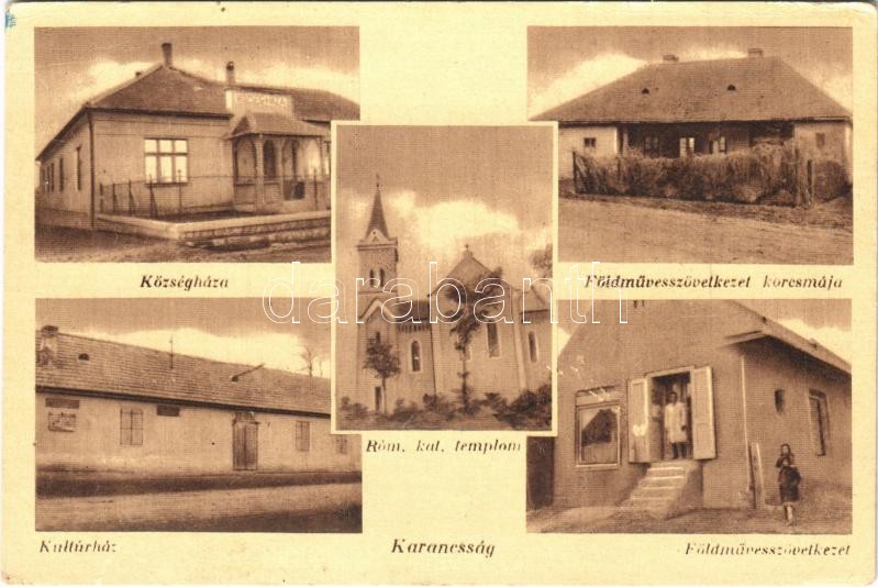 Karancsság, Községháza, Római katolikus templom, Kultúrház, Földművess... https://www.darabanth.com/de/401-Fernauktion/401.0/Ansichtskarten/Ungarn~1500001/Karancssag-Kozseghaza-Romai-katolikus-templom-Kulturhaz-Foldmuvesszovetkezet-kocsmaja~II2461026