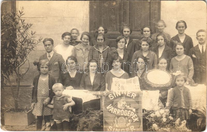 Beschreibung: Nagyatád, Singer hímző és varró tanfolyam, Singer varrógépek. Bencze István photo (kopott sarkak / worn corners)