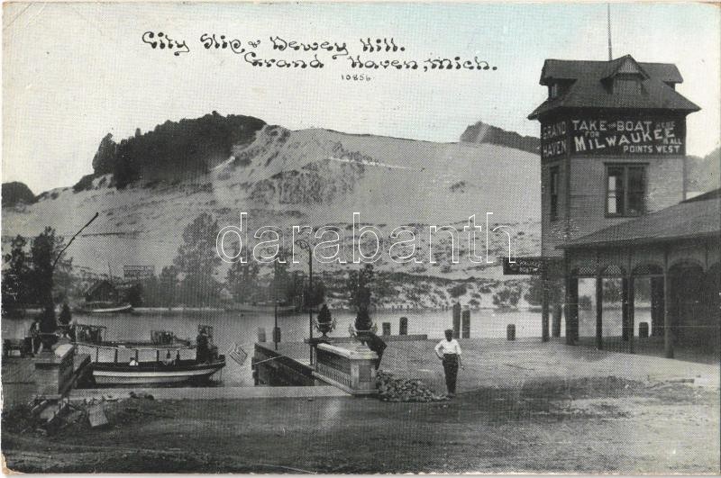 Grand Haven, City Slip and Dewey Hill, boat station, port (EK) https://www.darabanth.com/de/401-Fernauktion/401.0/Ansichtskarten/Vereinigte-Staaten-von-Amerika~1500018/Grand-Haven-City-Slip-and-Dewey-Hill-boat-station-port-EK~II2109702