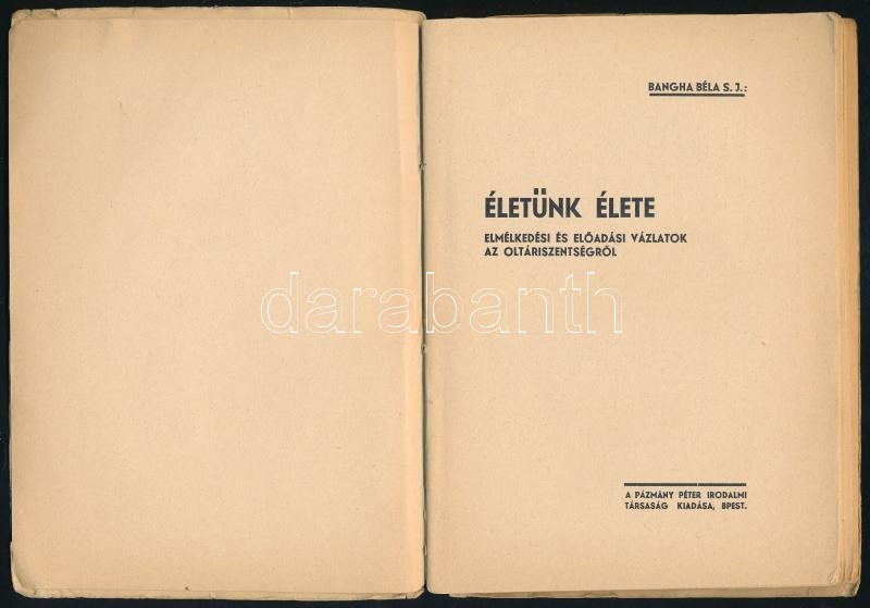 Bangha Béla: Életünk élete. Bp., Pázmány Péter Irodalmi Társaság. Kiad... https://www.darabanth.com/de/401-Fernauktion/401.0/Bucher/Bucher-Religion~1000014/Bangha-Bela-Eletunk-elete-Bp-Pazmany-Peter-Irodalmi-Tarsasag-Kiadoi-serult-papirkC3~II2465695