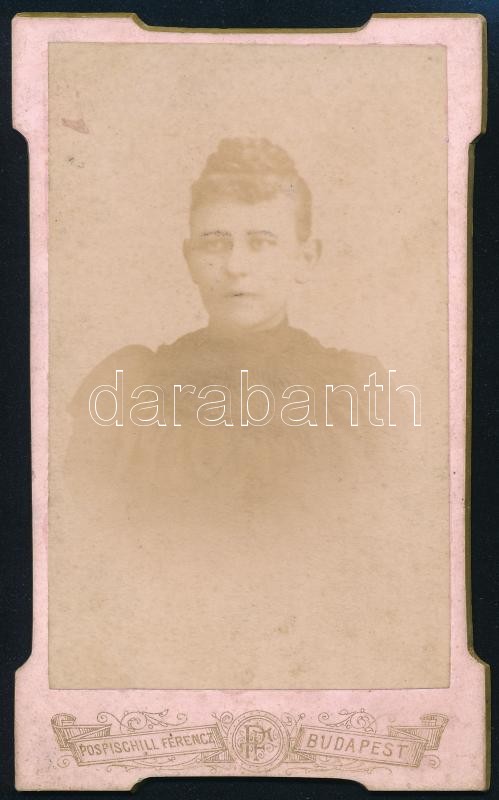 Beschreibung: cca 1900 Nő keményhátú portréja Pospischill Ferenc budapesti műterméből, 9x5,5 cm