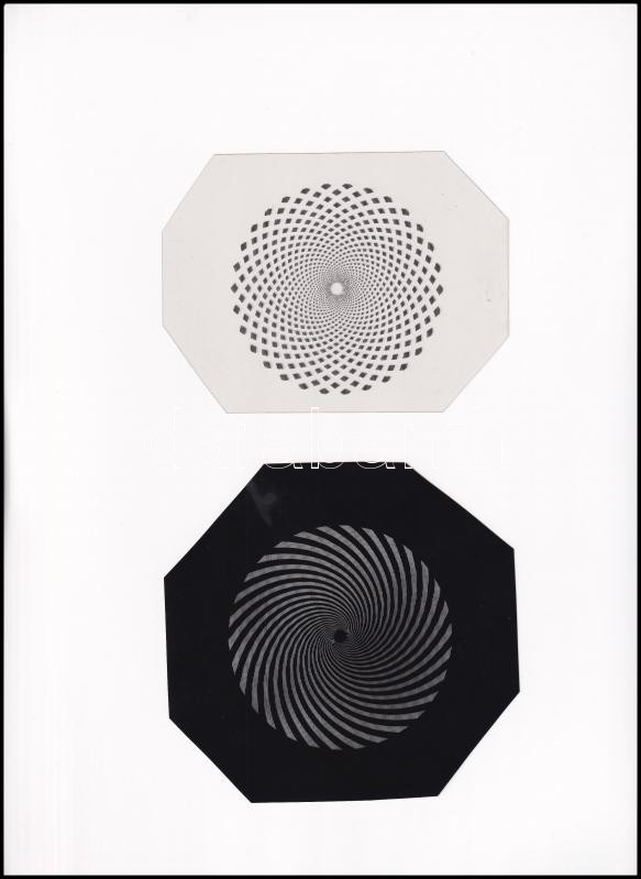 cca 1970 Optikai játékok, a két film egymásra helyezve és mozgatva, mindig más geometriai látványt nyújt, dr. Sevcsik Jenő (1899-1996) fényképész, szaktanár, szakíró hagyatékából 2 db síkfilm, vélhetően oktatási segédanyag volt, 12x11,5 cm és 12x9 cm