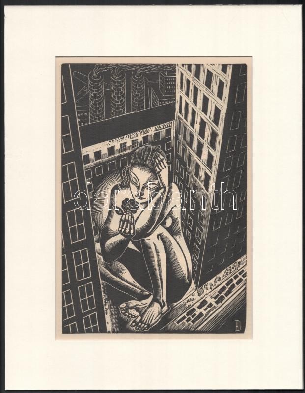 Beschreibung: Dallos Hanna (1907-1944): Hervadás, fametszet, papír, jelzett a metszeten, paszpartuban, 22×15 cm