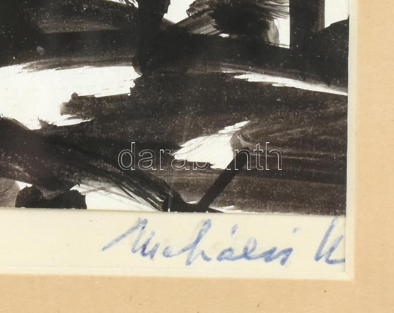 Beschreibung: Mohácsi Regős Ferenc (1917-2003): Dombos vidék. Filc, papír, jelzett, paszpartuban, üvegezett fa keretben, 13x11,5 cm