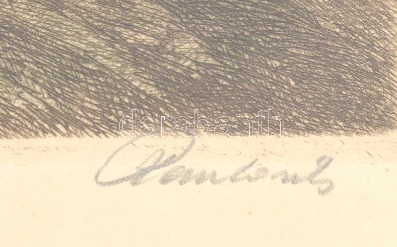Színezett rézkarc, papír, üvegezett keretben, jelzett, 30x40cm