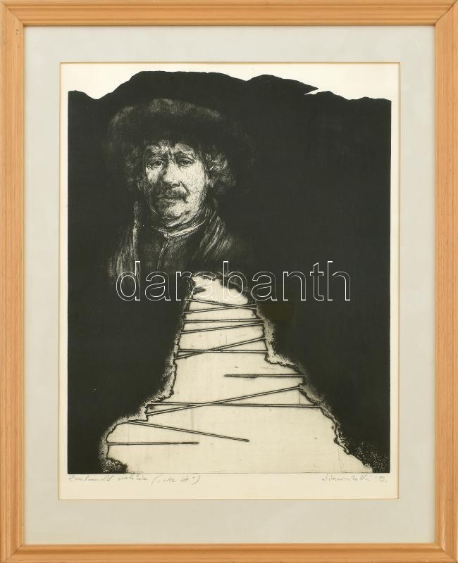 Simon Zoltán (1950-): Rembrandt emlékére (...Az út), 1993. Rézkarc, pa... https://www.darabanth.com/de/401-Fernauktion/401.0/Gemalde-und-Grafiken/Gemalde-und-Grafiken~500001/Simon-Zoltan-1950-Rembrandt-emlekere-Az-ut-1993-Rezkarc-papir-jelzett-Uvegezett~II2462434