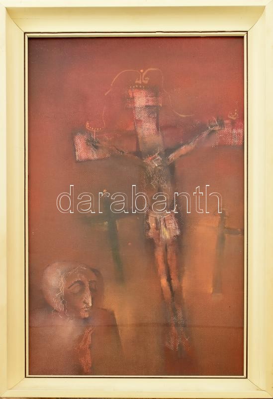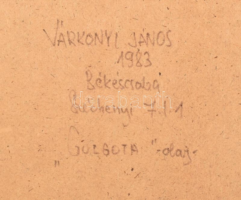 Várkonyi János (1947-): Golgota, 1983. Olaj, farost. Jelzett a hátolda... https://www.darabanth.com/de/401-Fernauktion/401.0/Gemalde-und-Grafiken/Gemalde-und-Grafiken~500001/Varkonyi-Janos-1947-Golgota-1983-Olaj-farost-Jelzett-a-hatoldalan-Uvegezett-fa-keretbe~II2461866