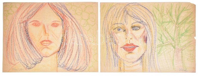 Beschreibung: Klie Z jelzéssel, 2 db mű: Női portré. Kréta, papír, sérült. 30,5x42,5 cm