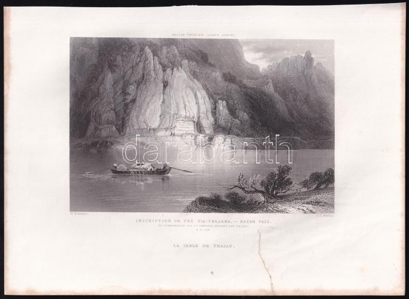 Beschreibung: cca 1844 Bartlett, William Henry (1809-1854): Inscription on the Via-Trajana - Kazán-szoros, acélmetszet, papír, foltos, 13×18 cm