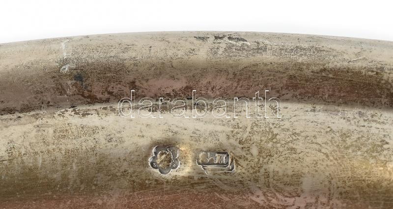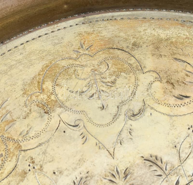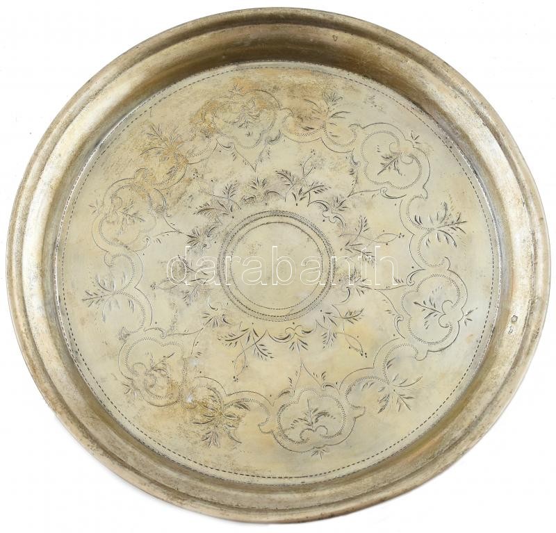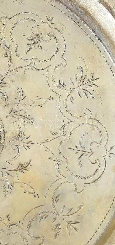 Beschreibung: Ezüst (Ag) Kerek szerviztálca dekoratív vésetekkel, jelzett, d: 21,5cm, nettó: 254g