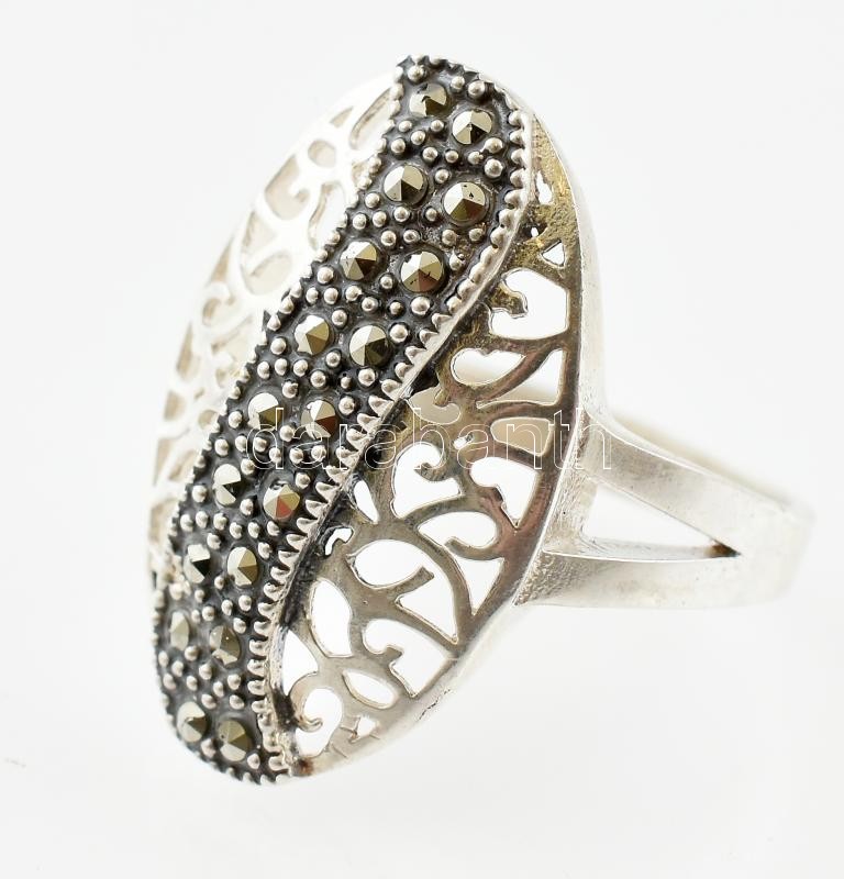 Beschreibung: Ezüst(Ag) ovális gyűrű, markazitokkal, jelzett, méret: 54, bruttó: 4,47 g